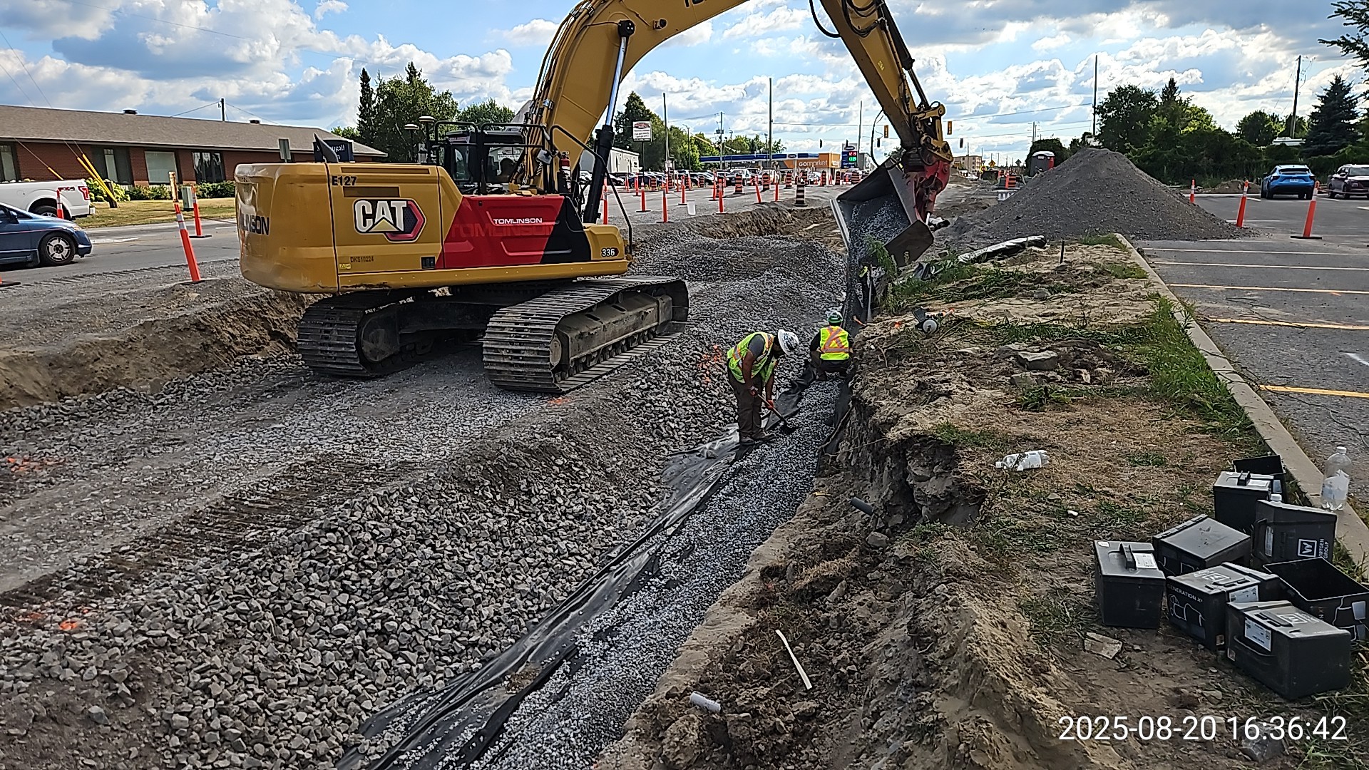 The United Counties of Leeds and Grenville’s Contractor (R.W. Tomlinson Ltd.) and the Municipality of North Grenville has commenced the four-lane widening of County Road 43 from 200 metres west of County Road 44 to 220 metres east of Colonnade Drive, in Kemptville.